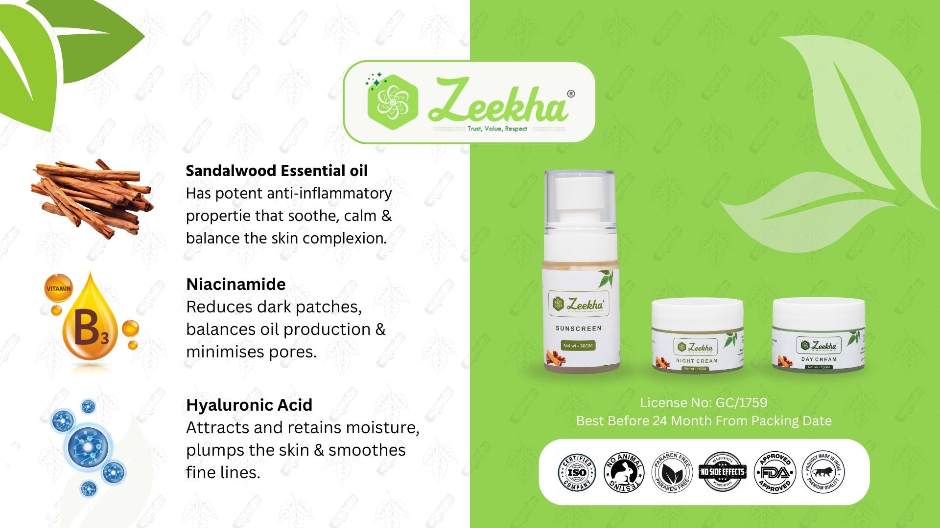 ₹ 1,599.00Sale price ₹ 799.00Zeekha Naturally Powerful Sandalwood Skin Whitening and Brightening Day & Night Cream ,Sunscreen -