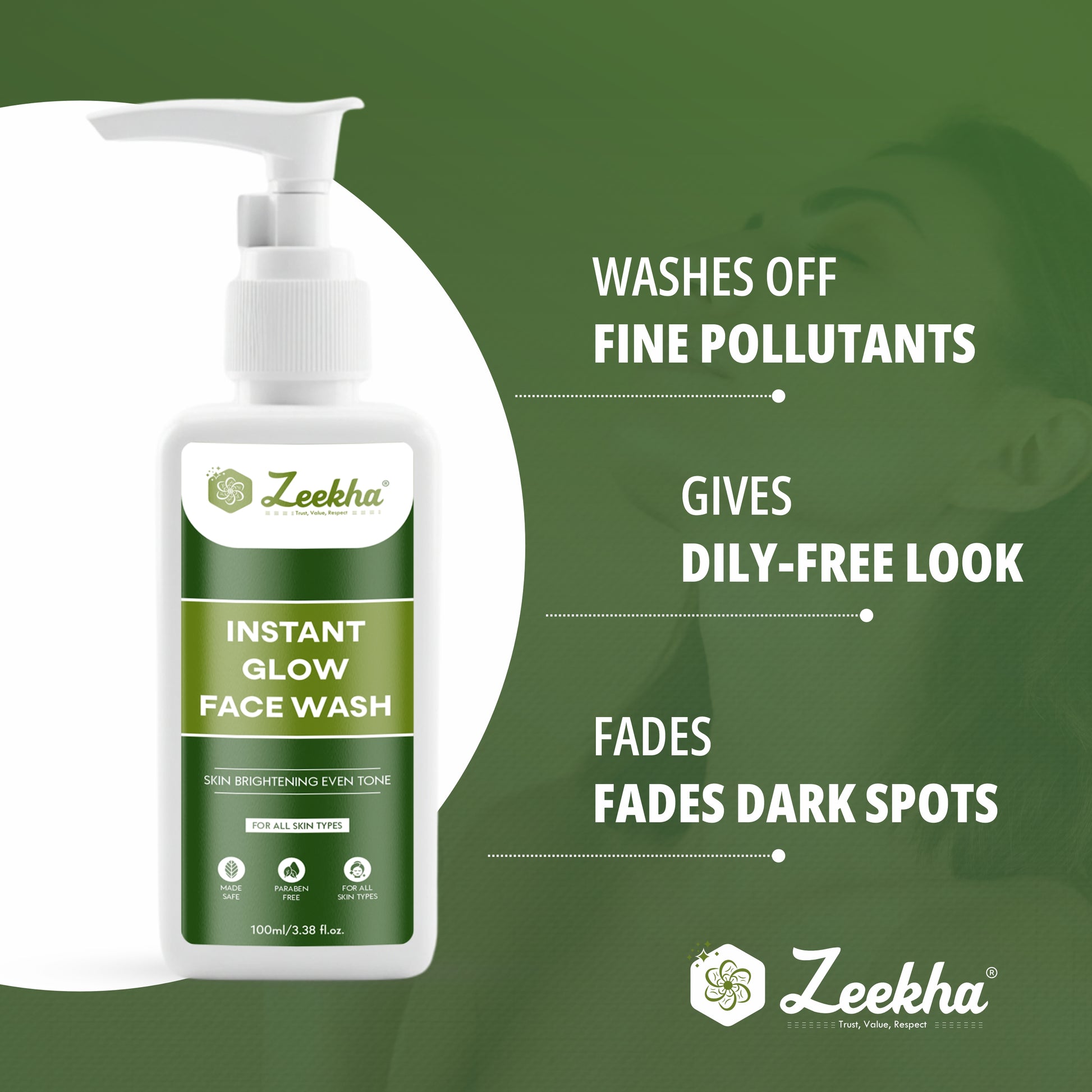 ZEEKHA Instant Glow Face Wash, Skin Lightening & Tan Removal Face wash,Oil Controal & Remove Pigmentation , Tan Removal Face Wash, All Skin Types Face Wash 100ml(Pack of 1)
