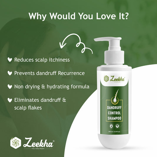 ZEEKHA Anti Dandruff Shampoo | Reduces Up to 100% Dandruff and Strengthens Hair result in 6-8 wash | Derma Approved Shampoo with Salicylic & Biotin | Shampoo For All Hair types | For Women And Men | 250ml